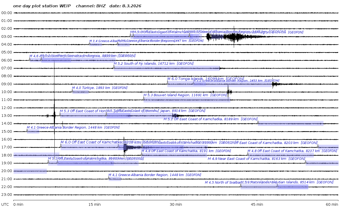 dayplot - archive of the seismic station "Parkhöhle Weimar"